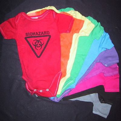 This is made to order baby wear. Pick your design. Pick your shirt color. Pick a print color. Pick a shirt style. Be as daring as you want - I will contact you if you choose a combination that doesn't work. About a week later I will send you a unique creation. These make great shower gifts! Have an idea for a great shirt? See the Custom Orders page for info about submitting designs. | |