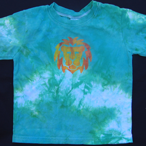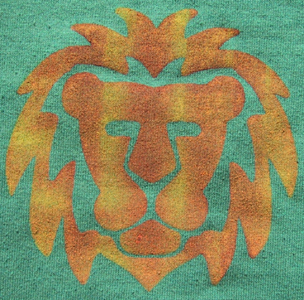 A lion face. My little guy really likes these animal faces. He says "ooooh lion" every time he sees this one. Here I have printed it in a mix of red and yellow over a hunter green shirt.