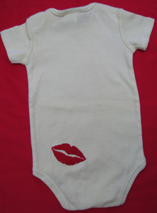 I was working on lips for a "Kiss my cloth diapered butt" shirt and thought just the lips would be cute too. Get this design in red on the butt of a black or white bodysuit for a super cute effect.