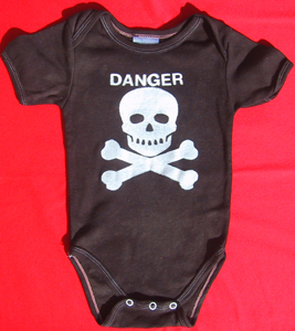 I believe that babies should come with warning labels. This one suits a lot of the diapers I've changed! Available as either "Danger" above, "Toxic" below, neither or both. Please specify which you want in the comments of your order.